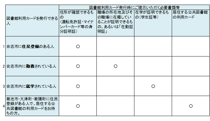(図書館利用カードを発行できる人とカード発行時に必要な書類等)